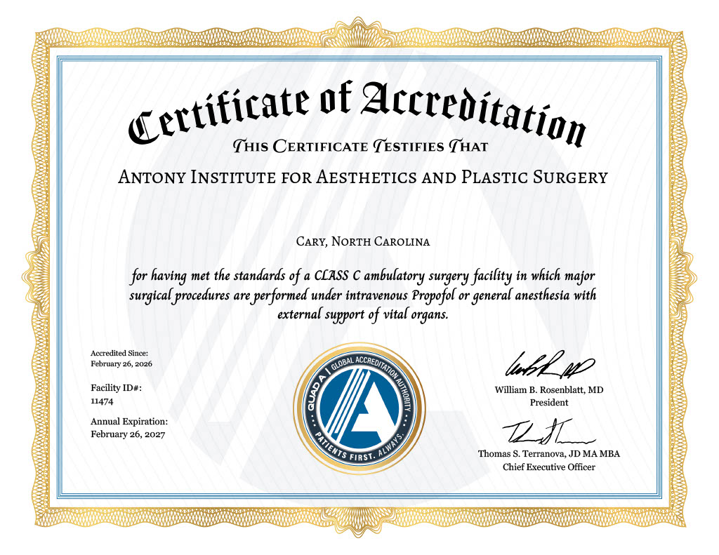 Dr. Antony has established a leading plastic surgery practice, the Antony Institute of Aesthetic and Plastic Surgery, in Raleigh and Cary, where she continues to advance the field of plastic surgery. Her previous academic roles have included Professor and Vice Chair of the Department of Surgery at Rush University Medical Center and leadership positions in national and regional surgical societies. She is currently an Assoc. Consulting Professor in the Department of Surgery, Division of Plastic, Maxillofacial and Oral Surgery at Duke University Medical Center. She maintains membership in numerous distinguished professional societies. She is Board Certified in Plastic Surgery and a fellow of the American College of Surgeons and American Society of Plastic Surgery.